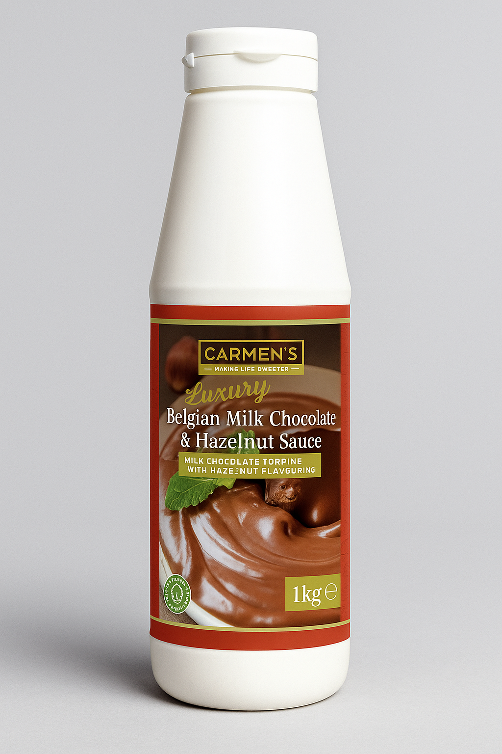 This Delicious Belgian Milk Chocolate & Hazelnut Sauce comes in 1-kilogram squeezy bottle and offers an amazing addition to your desserts, whether its topping Waffles, Crepes, Ice Cream or Milk Shakes to provide an exciting and new offering for your customers.